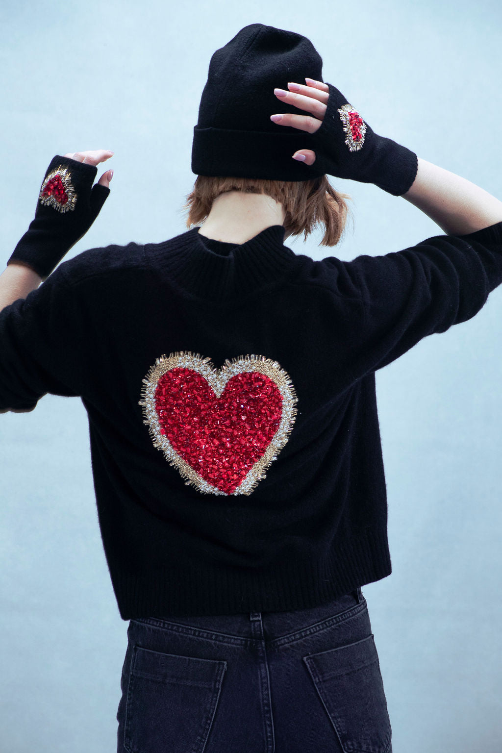 Cashmere Short Fingerless Gloves w. Scattered Crystals - Nile
