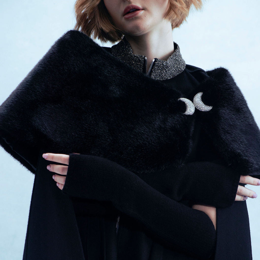 Cashmere Long Fingerless Gloves w. Moon and Stars Medallions