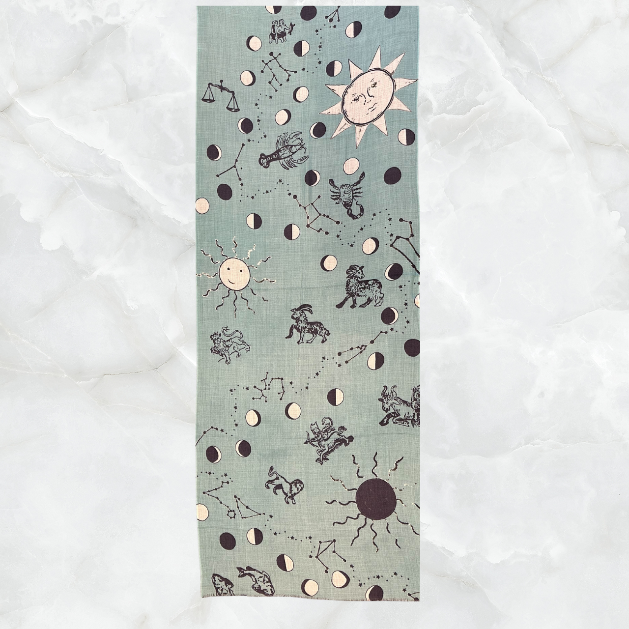 Discover celestial charm in this teal Zodiac Shawl. Featuring stunning astrological designs, it's the perfect layering piece to elevate any outfit with cosmic elegance and timeless style.